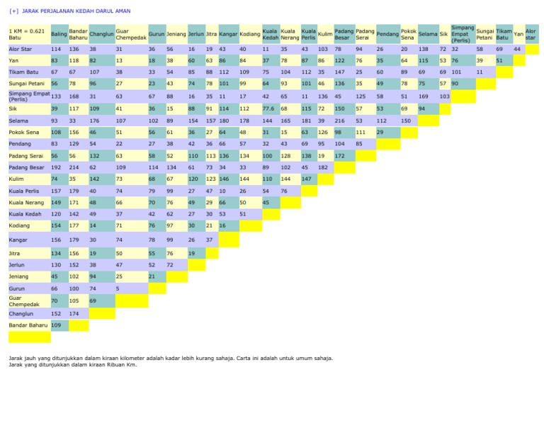 Jadual Jarak Perjalanan Dalam Kilometer Di Malaysia Georgiartl